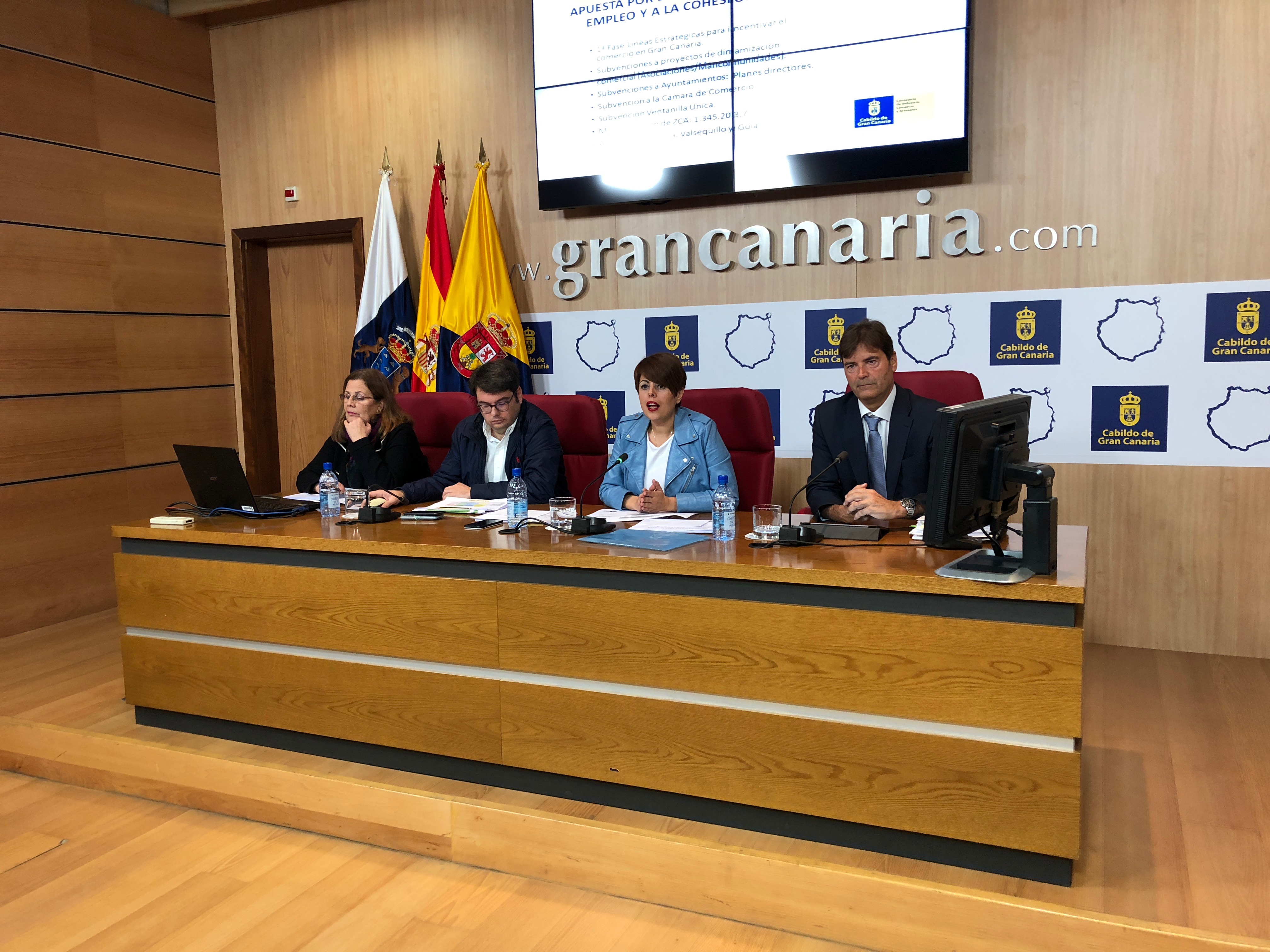La Consejería de Industria y Comercio contará con 600.000 euros más, un 9 por ciento, hasta casi 7 millones de los que 2,3 estarán destinados al empleo y la cohesión social en actuaciones como la concesión de subvenciones a proyectos de dinamización comercial, planes directores de ayuntamientos y la Cámara de Comercio, además de las obras para modernizar las zonas comerciales en Arucas, Santa Lucía, Valsequillo y Guía, con una aportación de más de 1,3 millones de euros.