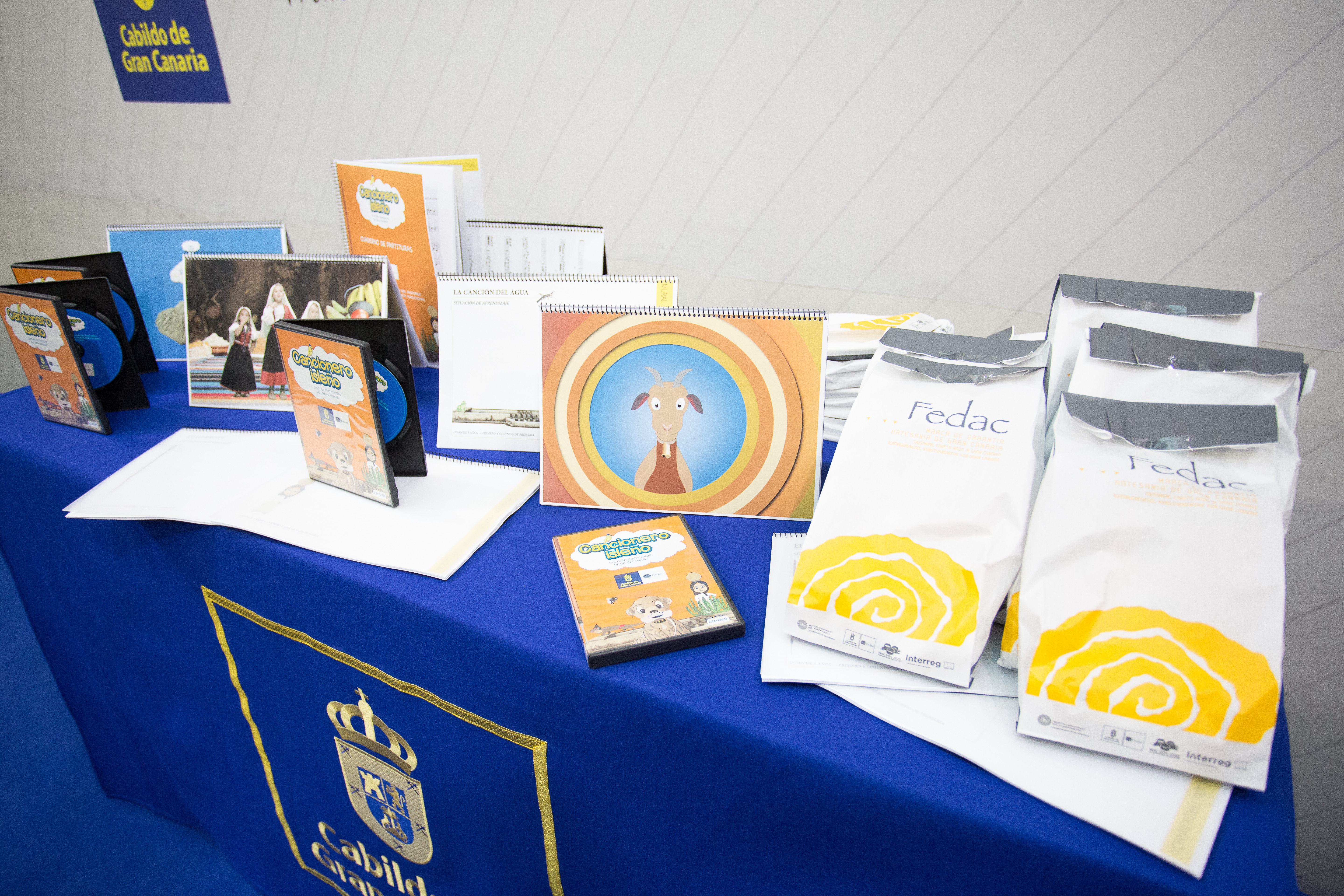 Así, los docentes recibieron un disco compacto con las canciones en imágenes animadas del Cancionero de la Cultura Tradicional de Gran Canaria, temas que hacen referencia a la cultura del agua, la actividad del pastoreo, el juego del garrote canario y la gastronomía tradicional junto a antiguas canciones basadas en los artesanos.